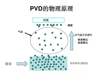 PVD(物理氣相沉積)PVD(物理氣相沉積):在真空條件下,采用物理方法,將材料源(固體或液體) 表面 氣化成氣態(tài)原子、分子或部分電離成離子,并通過低壓氣體(或等離子體)過程,在基體表面沉積具有某種特殊功能的薄膜的技術。PVD主要方法包括真空蒸度、濺射鍍膜等, 不僅可沉積金屬膜、合金膜, 還可以沉積化合物、陶瓷、半導體、聚合物膜等,所涉及材料包括所有固體(C、Ta、W)、鹵化物和熱穩(wěn)定化合物。PVD的三種基本工藝是真空或熱蒸發(fā)、離子鍍和濺射:①熱(或真空)蒸發(fā)是一種古老的沉積工藝,用于在固體材料表面形成和生長薄膜。② 濺射是PVD工藝中一個至關重要的工序。與蒸發(fā)不同,源不再是由熱產(chǎn)生的,而是由離子撞擊目標產(chǎn)生的。③ 離子鍍是在惰性氣體放電系統(tǒng)中使用連續(xù)或間歇轟擊,通過原子大小的高能粒子沉積薄膜,以修正和調(diào)節(jié)沉積薄膜的性質(zhì)。