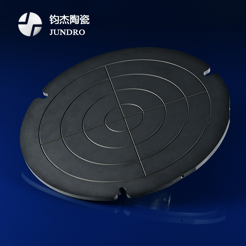 在高端光刻機(jī)中,涉及高效率、高精度、高穩(wěn)定性的運(yùn)動(dòng)控制技術(shù)和驅(qū)動(dòng)技術(shù),對(duì)結(jié)構(gòu)件的精度和結(jié)構(gòu)材料的性能提出了極高的要求。碳化硅陶瓷具有極高的彈性模量、導(dǎo)熱系數(shù)和較低的熱膨脹系數(shù),不易產(chǎn)生彎曲應(yīng)力變形和熱應(yīng)變,并且具有極佳的可拋光性,可以通過機(jī)械加工至優(yōu)良的鏡面,因此采用碳化硅陶瓷作為光刻機(jī)用精密結(jié)構(gòu)件材料具有極大的優(yōu)勢(shì)。在光刻機(jī)中碳化硅陶瓷主要用于制造E-chuck、Vacumm-chuck、Block、磁鋼骨架水冷板、反射鏡、導(dǎo)軌等部件。